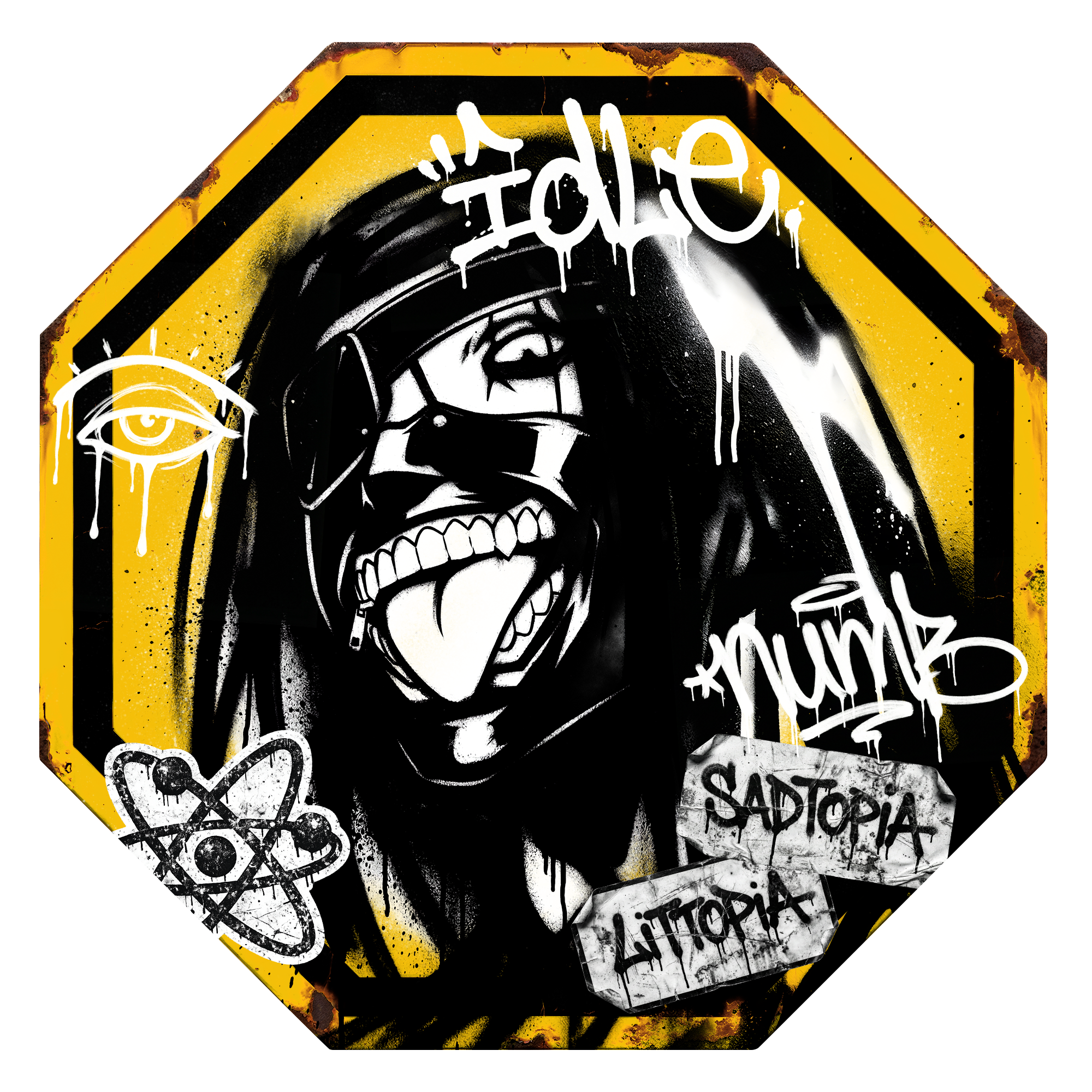 Moving through the quiet street, he found a sticker taped to a rusted pole that seemed newly placed.